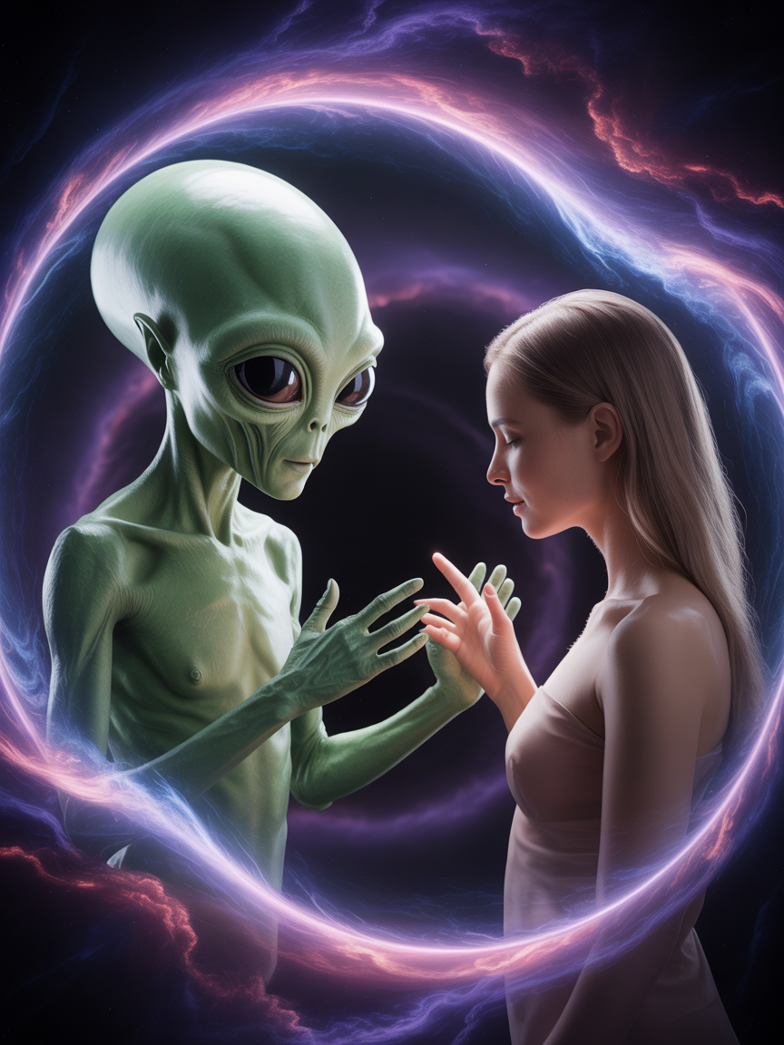 Сон мне приснился очень много лет назад. Я проснулась в огромном удивлении. (не в испуге). Я была на распутье. Стояла перед важными событиями в своей жизни(не важно негативными или позитивными- не бывает все только черное или белое). Но вот сон: я сижу и напротив меня гуманоид (надо сказать, что фантастику я не люблю, телек почти не смотрю). Он и правда выглядит как в стандартных описаниях: зеленоватая кожа, огромные глаза на вытянутом лице, глаза без белков, зрачки только черные. Его взгляд как гипноз. Он протягивает длинную руку с необычайно длинными пальцами ко мне. Я без испуга тоже повторяю его движения как зеркалю. И инопланетянин превращается в удивительной неземной красоты молодую женщину, каких воспевают поэты и писатели. Сейчас подобных красавиц только нейросеть/ИИ рисует). Но это было лет двадцать назад. этот сон врезался мне в память. Почему то, не могу забыть этот сон даже спустя годы... Есть сны, которые забываются к завтраку. А есть такие, которые живут в памяти годами.