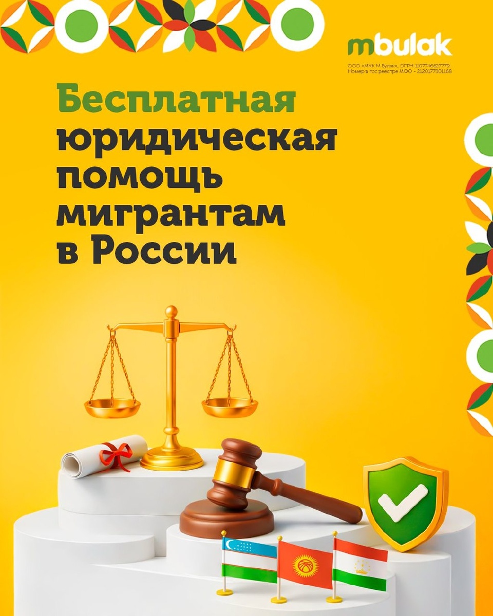 ! 🤔 Не знаете какие документы нужны для легальной работы в России? Или Вам нужна помощь в заполнении документов на патент, РВП или ВНЖ? А может у вас есть специфический вопрос, в решении которого поможет только квалифицированный юрист? Теперь получить юридическую консультацию можно совершенно бесплатно, прямо на сайте М Булак! ❤️