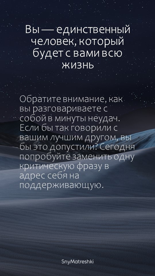 В повседневной суете мы часто теряем контакт с тем, что чувствуем и о чём на самом деле думаем. Эта рубрика — короткие напоминания, которые помогают остановиться и прислушаться к себе. Здесь нет готовых решений, только повод заглянуть внутрь и задать честный вопрос. Читайте, делайте паузу, дышите. И пусть каждый день будет чуть ближе к вам настоящему. Поддержать автора Александра Бóгдан,