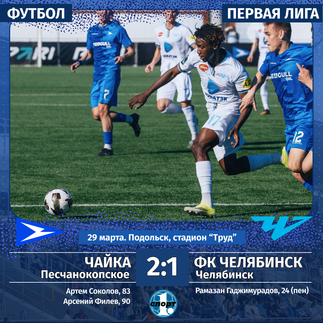 Неожиданное поражение в 26-м туре Первой лиги потерпел ФК «Челябинск». Южноуральская команда сенсационно уступила в гостях главному аутсайдеру турнира «Чайке» со счетом 1:2. Подопечные Романа Пилипчука вели в счете, но пропустили два гола в концовке матча и упустили возможность взобраться на 4-е место в турнирной таблице, сообщает корреспондент ИА «Первое областное». Мало того что «Чайка» перед этим туром замыкала турнирную таблицу первенства, так еще и вынуждена была проводить домашний поединок не на своем родном поле, а в Подольске. Но этот фактор не повлиял на игру команды. Молодой и амбициозный коллектив умудрился выиграть у соперника, претендующего на высокие места по итогам чемпионата и выход в РПЛ. В первом тайме преимущество ФК «Челябинск» не вызывало сомнений. Подопечные Романа Пилипчука забрали под контроль мяч, совершили несколько хороших подходов к владениям соперника. И логично, что именно они открыли счет в матче. На 24-й минуте судья назначил пенальти в ворота команды из