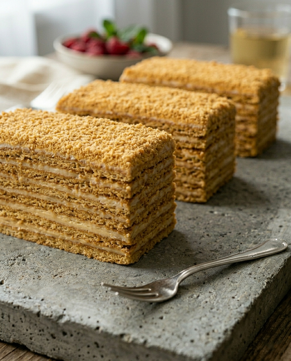 Бывает такое: сидишь, ни с того ни с сего, и вдруг понимаешь — хочу медовик. Не просто так, а именно сегодня, именно сейчас. И хотя раньше я готовила его только для кого-то — на день рождения, в гости, по просьбе, — тут захотелось для себя. Странно, правда? Ведь я вообще не любитель мёда. Моё знакомство с ним началось с мультика про Винни-Пуха. Помните? Там мёд был чем-то волшебным, тягучим, золотым, пахнущим сказкой. Я представляла его именно таким... А когда попробовала в первый раз, честно говоря, разочаровалась. Вкус оказался совсем не тем. Слишком душистым, слишком сладким, слишком... настоящим, что ли. Прошло больше тридцати лет, а то детское разочарование всё ещё со мной. Я не ем мёд ложкой, не намазываю на хлеб, не добавляю в чай. Но медовик — другое дело. В нём мёд превращается в сказку. Он становится тем самым, каким я его когда-то представляла: нежным, карамельным, почти волшебным. Может быть, потому что в торте он не один, а в компании масла, яиц, сметаны и долгой пропитки.