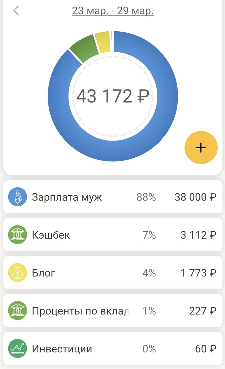 Следующая неделя, к сожалению, будет более затратная: предстоит оплата садика, коммуналки и покупка подарка ко дню рождению старшей дочки. Отложила на все это 58 тысяч, лежат на накопительном счете в Яндексе. Жаль придется потратить, за неделю на счет накапало 118 рублей процентами. Мелочь, а приятно.