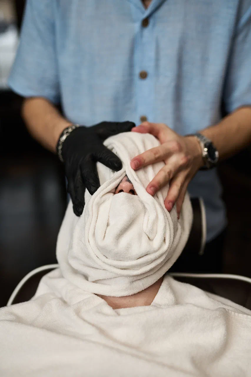 жжение после бритья. В барбершопе всё начинается с подготовки. Горячее полотенце — это не просто приятная процедура. У него есть конкретная задача. Тёплый пар: размягчает волос,