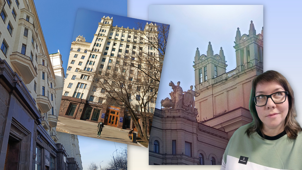 Знаменитые сталинские высотки - одна из визитных карточек Москвы. Семь величественных небоскрёбов с острыми шпилями - символ возрождения страны после тяжелейшей войны. Все 7 зданий заложены в один день 7 сентября 1947 года. А строили комплекс 10 лет. Здания имеют разное назначение - это Министерство иностранных дел, главный корпус МГУ, есть гостиницы, есть жилые. В часть из них доступ ограничен, в некоторые водят экскурсии. Высотка на Котельнической набережной как раз жилая. Но в ней расположен кинотеатр “Иллюзион”, куда мы и направимся. Приехали задолго до сеанса, чтобы изучить все элементы здания, походить вокруг. По стилю - сочетание классицизма, ар-деко и готики. Этот стиль ещё называют сталинский ампир. Массивные гранитные основания, богатый декор и узнаваемые очертания - композиция зданий ступенчатая. Построено роскошно, с размахом. Характерные черты - всевозможные барельефы, колонны, скульптуры. Всё это очень интересно разглядывать. Кстати, именно высотка на Котельнической набе