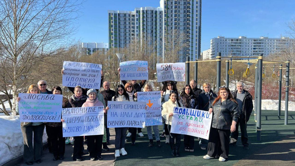 Сможете сходу определить какое из двух свежее? Да без разницы. Дольщики ЖК Внуково Парк от застройщика Атлант (ого! назвал себя как) вышли на стихийный митинг. Люди чем-то недовольные. Дескать, в Новой Москве в Марушкино несколько месяцев не ведутся никакие работы в 3-й очереди. Дома просрочены на год с не большим, должны быть сданы в сентябре, но как это сделать, если на стройке гуляет ветер? Люди обращаются к Собянину с просьбой разобраться, почему стройка стоит. Так и быть, подскажу: возле сугроба — фото свежее, там где мамка с коляской — старое. Тот киндер уже подрос и взял ипотеку, может даже в нынешнем доме. Едрён батон — всё не то. Неверная стратегия. Вот если бы они попросили его прочитать лекцию о пользе всё защищающего эскроу, он бы подскочил. А, так. Не интересно. И, да, между фото есть различия. Там были обманутые дольщики, а здесь защищённые эскроутчики. Понимать надо! 🔲 Неустойка с застройщика: да/нет