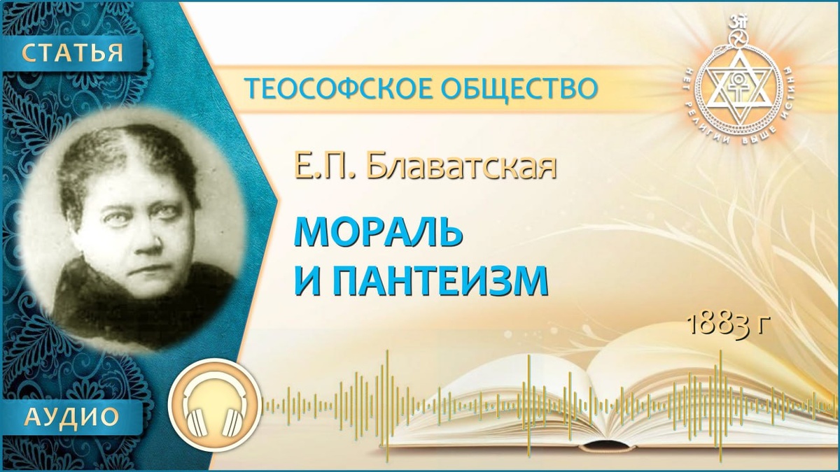 П. Блаватской в формате аудио! ✔️ https://vk.com/audio2000109193_456246248 📖 Статья "Мораль и Пантеизм" впервые вышла в журнале "Теософ" в ноябре 1883 года. 🎧 🌟Приглашаем вас слушать, делиться с друзьями и оставлять комментарии! ✅Статью можно прочесть на сайте "Теопедия": clck.ru/3RMPei ✅В оригинале она опубликована здесь: https://en.teopedia.org/lib/Blavatsky_H.P._-_Morality_and_Pantheism ❗️Аудиозапись публикуется с разрешения диктора. 🌸 Благодарим его и публикуем ссылку на его сообщество в ВКонтакте "Аудио книги BIGBAG": vk.com/bigbag_audio
