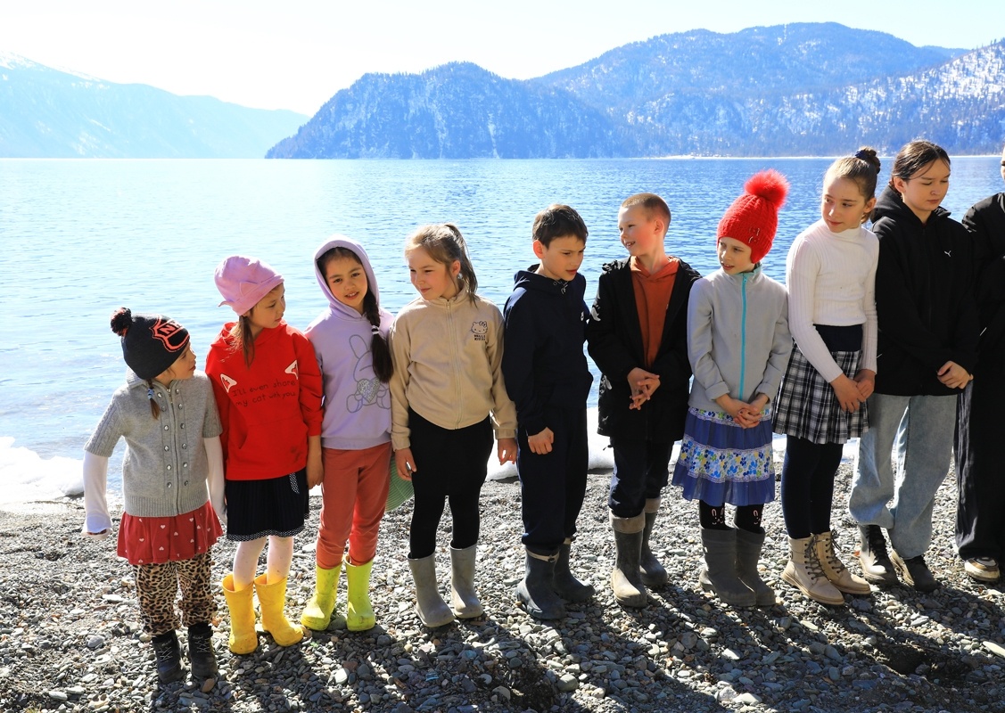 Весна на Телецком озере в этом году выдалась тихой. 28 марта на берег вышли ученики Яйлинской школы, их родители и учителя - отмечать День воды. Погода словно подыгрывала: тепло, безветренно, и прибрежные горы смотрелись в воду как в зеркало. Праздник получился и познавательным, и творческим. Начался он с появления главного героя - Нептуна. В сверкающей короне и с трезубцем он сразу задал тон: устроил для ребят викторину о воде, провёл несколько конкурсов. Дети, кстати, участвовали в них с видимым азартом. Но больше всего, кажется, всем понравилось мастерить. Из того, что было под рукой, школьники смастерили кораблики и тут же отправили их в плавание по озеру. А девочки под руководством Екатерины Геннадьевны Сухоруковой подарили зрителям танец с лентами - он получился лёгким и очень подходил этому дню. На камнях развернули выставку рисунков: такое необычное выставочное пространство оказалось очень уместным. Ростислав Карпов прочитал стихи Никосты о Телецком озере проникновенно, под общ