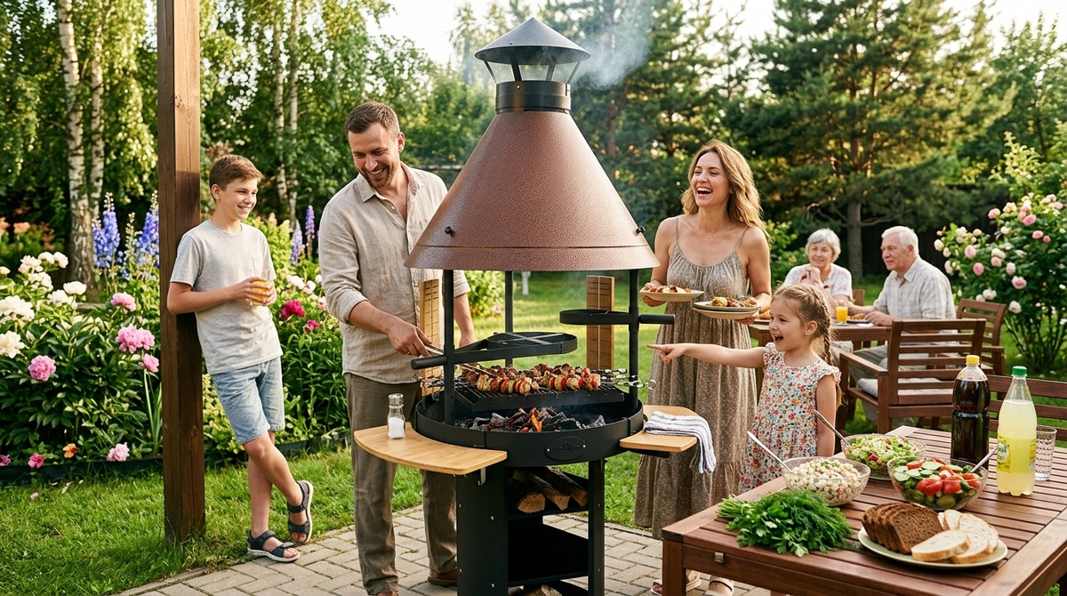 Ориентир простой: на 1 человека нужно примерно 150-200 см² рабочей зоны. На компанию из 6-8 человек достаточно гриля с поверхностью от 1200 до 1600 см². Если пространство на даче ограничено, компактная модель с диаметром котла 47-50 см закроет большинство задач.