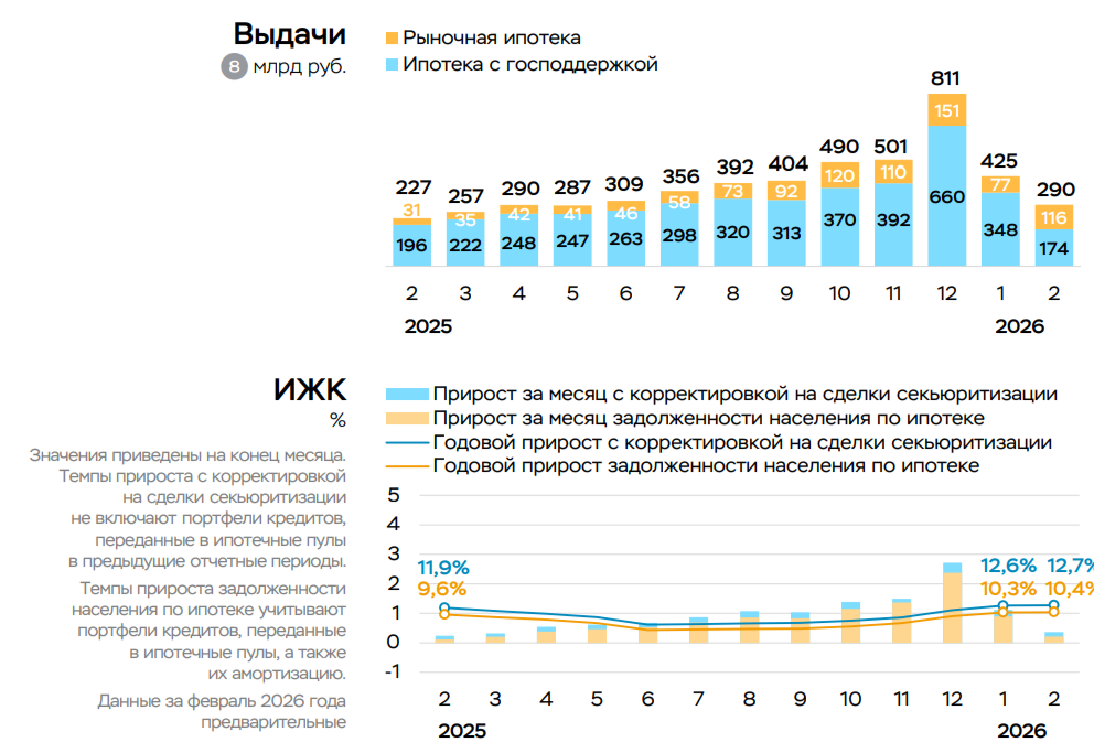 В феврале 2026 г. корпоративное кредитование снизилось за счёт госконтрактов, в ипотечном уже не те темпы, "помогло" ужесточение ипотеки