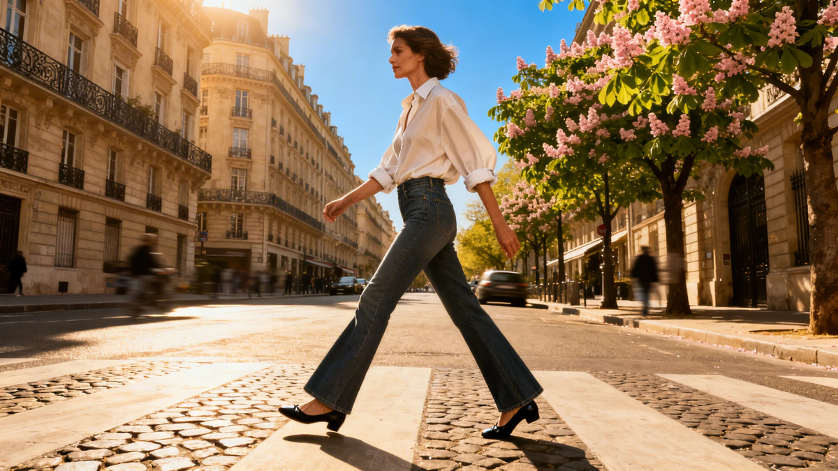 Клёш-джинсы и балетки: как француженки создают стиль весны 2026 В Париже снова актуальны клёш-джинсы с чёткой линией и винтажным настроением. Француженки сочетают их с балетками и лаконичными ботинками. Тренд возвращает уверенность и женственность в повседневный стиль. Почему этот силуэт снова на пике - в материале. Фотография: Peterburg2.ru Весенний гардероб 2026: какие джинсы и обувь выбирают француженки