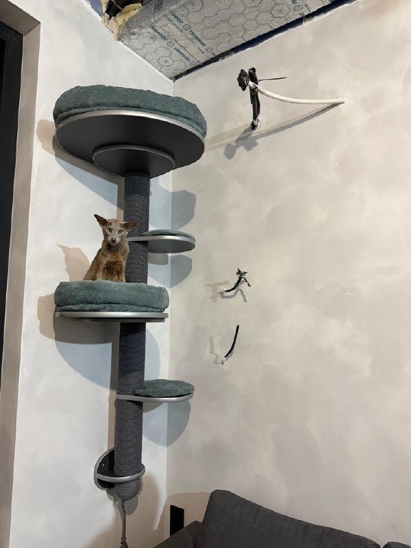 ? У осознанных владельцев и опытных проживающих с кошкой этот вопрос не возникает. 😜 А для остальных расскажем ❤️ Кошки территориальные животные. То есть, территорией она будет считать вообще все, что есть в доме - и мебель, и ремонт, и подоконники, где стоят цветы. А это значит, что если не будет своего места, поверхностей, где можно "метить" свою территорию, в ход может пойти все, что угодно и предсказать это будет трудно. Для того, чтобы разграничить то, что кошке можно и что нельзя, необходимо организовать дозволенное и в этом поможет мебель для кошек. Появиться она должна раньше или одновременно со всем остальным. 1) Когтеточка самая базовая, а если места много - то несколько. Она может стоять на полу, висеть на стене, главное - она должна быть и нравиться кошке. Тогда риск того, что кошка будет запускать когти в диваны и кресла (которые ей никто не планировал отдавать) снижается в разы. 2) Лазилка или вертикальный комплекс - маст хэв для всех кошек, которые по голой стен