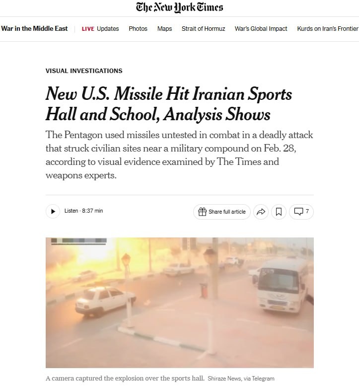The New York Times сообщает, что к такому выводу пришли журналисты и эксперты по вооружениям, проанализировавшие видеозаписи атаки. По их данным, характер взрыва, силуэт боеприпаса и следы поражающих элементов соответствуют именно этому типу ракеты. Как отмечает издание, речь идёт о новейшей системе вооружения, разработанной для американской армии. Ракета детонирует в воздухе и разбрасывает вольфрамовые поражающие элементы, которые наносят большой урон на значительной площади. Именно такие следы — многочисленные пробоины в стенах и конструкциях — обнаружены на здании школы и прилегающего спортивного зала. По данным расследования, рядом со школой действительно расположен объект КСИР. При этом остаётся открытым главный вопрос: был ли удар по гражданским объектам преднамеренным. Эксперты не исключают, что трагедия могла стать результатом ошибки наведения, неправильного выбора цели или возможных проблем с новой системой вооружения, которая только недавно прошла испытания. В Центральном ком