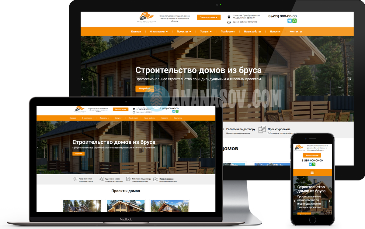 Строительство домов - шаблон сайта на Wordpress. Цена 40 000 рублей.