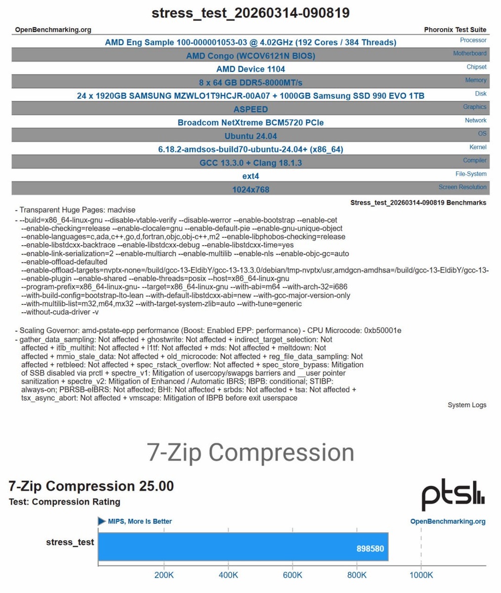 В сети появились первые тесты инженерных образов AMD EPYC Venice на Zen 6 в OpenBenchmarking