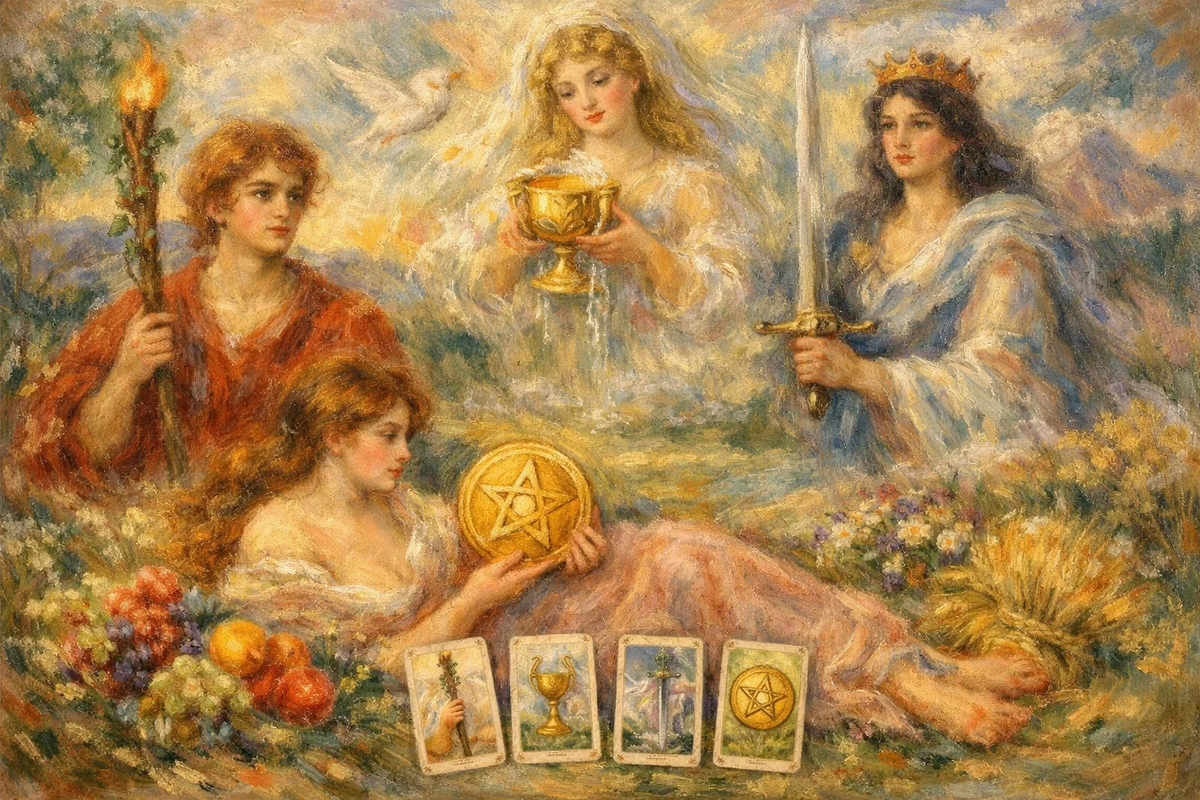 Тузы в Таро часто называют «началом», «шансом», «даром». Но эти слова лишь касаются поверхности. Если всмотреться глубже, становится ясно, что Туз не событие и даже не действие. Это потенциал, который ещё не стал ни тем, ни другим. Проблема в том, что слово «потенциал» само по себе слишком абстрактно. Оно звучит как обещание, но не объясняет механизма, а в работе с Таро важно не просто назвать, а понять, как это проявляется в поле значений. Туз — не «что-то будет». Туз — что-то уже есть, но ещё не оформлено. Это принципиальное различие. Туз не гарантирует реализации. Он указывает на наличие энергии, которая может стать реальностью при определённых условиях. Если говорить языком системы, Туз чистая стихия до взаимодействия. До конфликта, до формы, до выбора. В этом сложность читать Тузы в раскладах. Они не описывают факт. Они указывают на возможность возникновения факта. Рассмотрим, как это работает в разных функциях. Возьмём Туз как исток. Туз Жезлов в позиции истока — не «начало прое