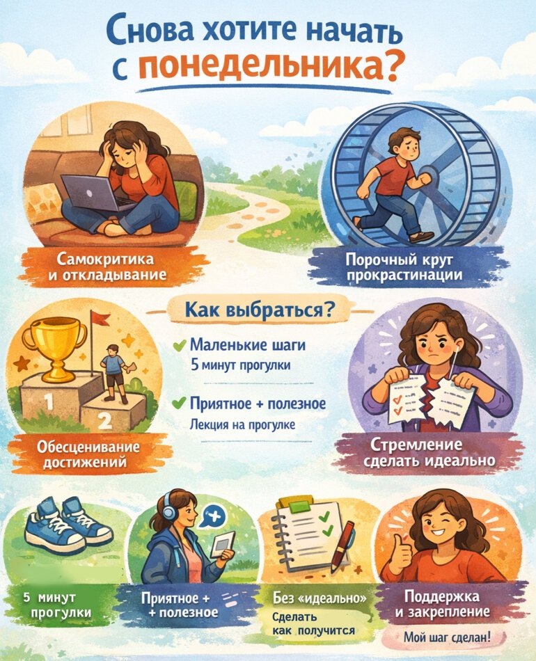 не ждать «идеального момента», а учиться двигаться маленькими шагами — даже с сомнениями, страхом и усталостью. Ведь изменения — это не про резкий старт. Это про регулярное движение на встречу своим целям.