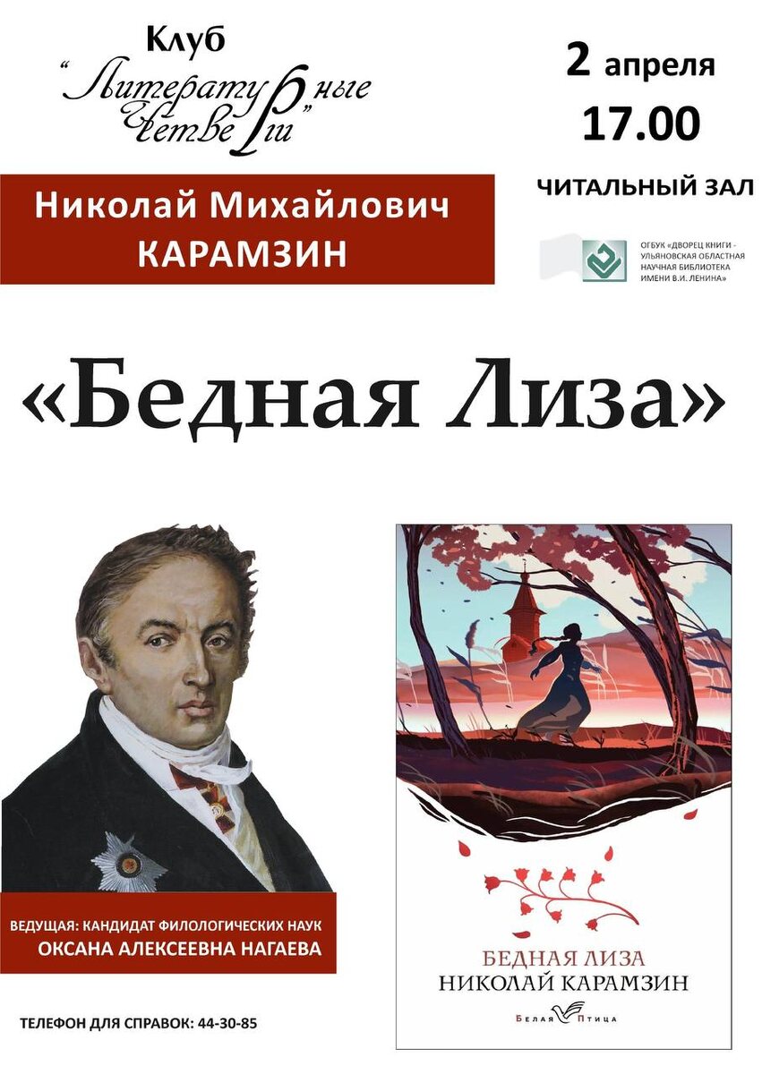 » 🗓️ 2 апреля 17.00 📍Дворец книги Темой встречи станет повесть Николая Михайловича Карамзина «Бедная Лиза». Произведение выбрано неслучайно: 2026 год является юбилейным для великого писателя и историка. Николай Михайлович Карамзин считается основоположником сентиментализма в русской литературе и автором фундаментального труда по истории России. Повесть «Бедная Лиза» стала настоящим открытием своего времени благодаря простоте слога, искренним чувствам и глубокому психологизму персонажей. История любви бедной крестьянки Лизы и дворянина Эраста повествует о трагической судьбе простых людей и раскрывает нравственные проблемы общества конца XVIII века. Заседание пройдёт под руководством кандидата филологических наук Оксаны Алексеевны Нагаевой. 🏷️ вход свободный #2апреля26@culturnik 🕊️пойду • ❤️ нравится • ✅рекомендую