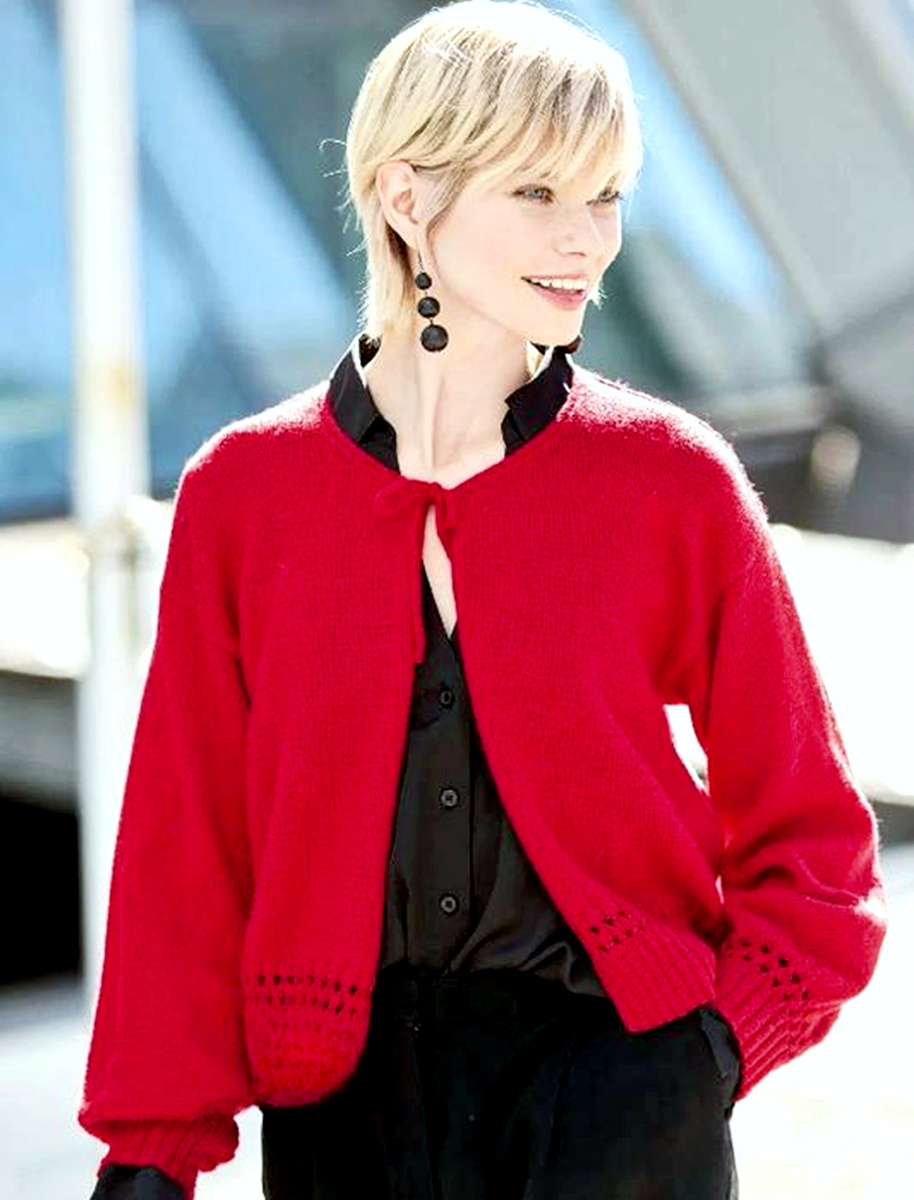 № 1: Красный кардиган на завязках с ажурной резинкой ♥