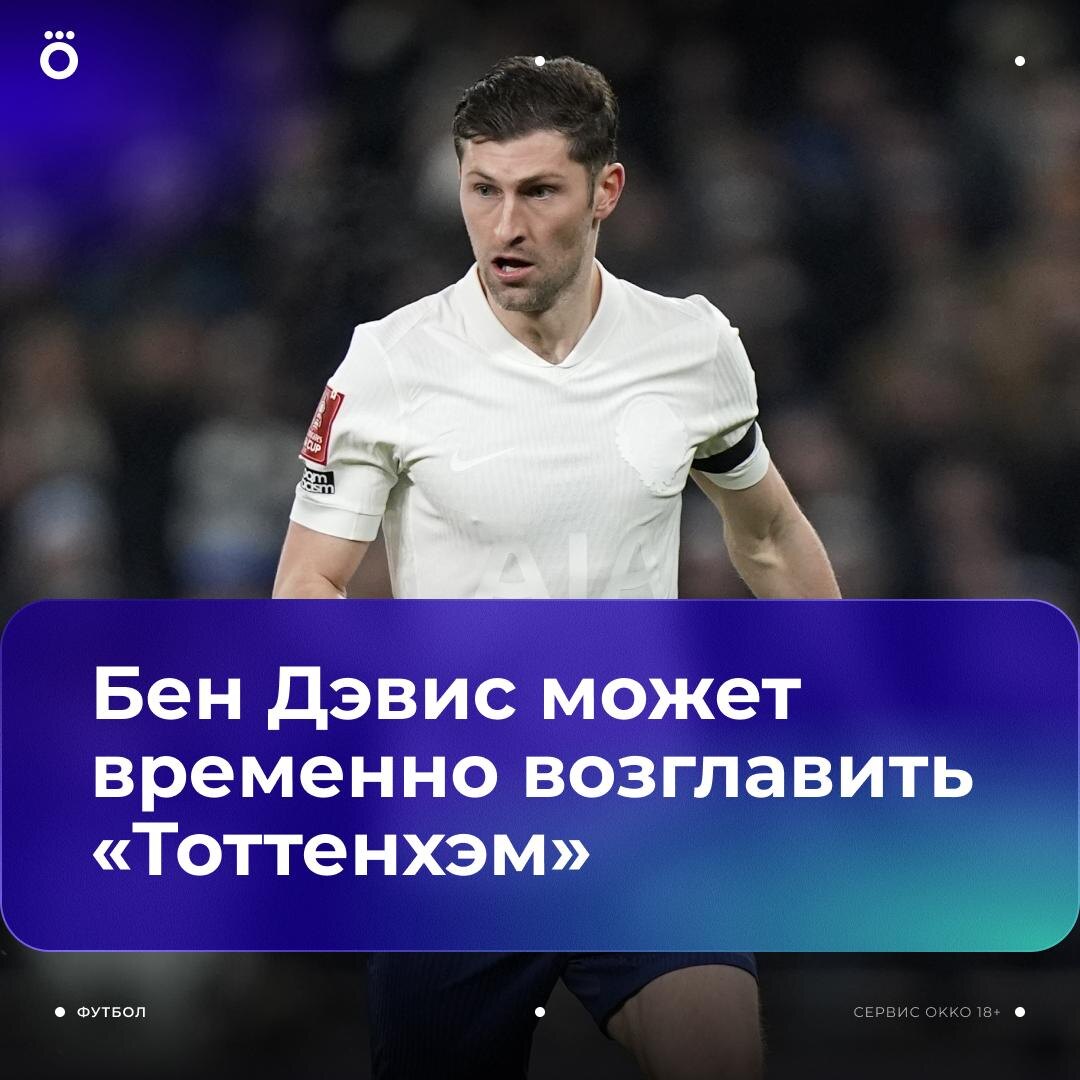 «Тоттенхэм» может возглавить травмированный игрок. Необычная замена Тудору 😳 The Telegraph пишет, что в клубе рассматривают Бена Дэвиса в качестве временного тренера. Сейчас защитник восстанавливается после операции на лодыжке. Еще одного кандидата называет Daily Mail. Это Гленн Ходдл, который не тренировал 20 лет 🤔 😀 VK Okko Cпорт, MAX Okko Спорт