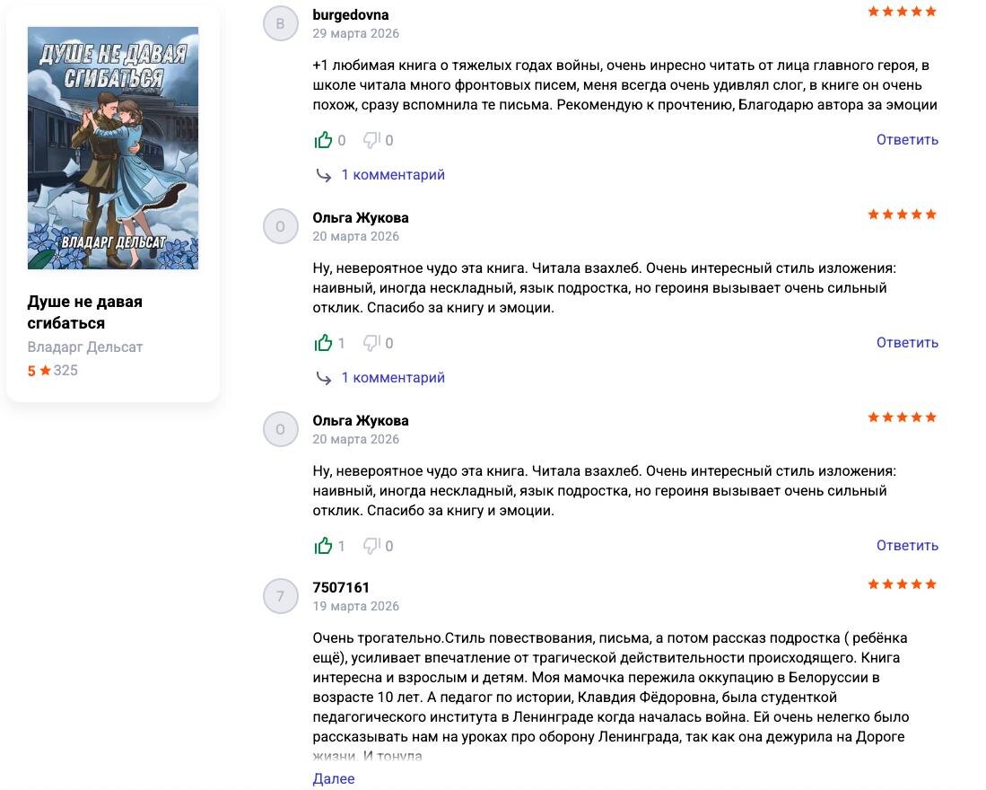 Теплые слова, согревающие душу автора. Люди, которые добровольно согласны поплакать над нашей историей, которые не кривят лицо от упоминания тем Великой Отечественной Войны, которые понимают, что она значила для всех нас. Низкий поклон. #писательство #личное Напоминаю: на апрельском нонфике на стенде Ридеро можно будет купить бумажную книжку по цене электронной. А с автографами мы решим немного опосля :) #издательское