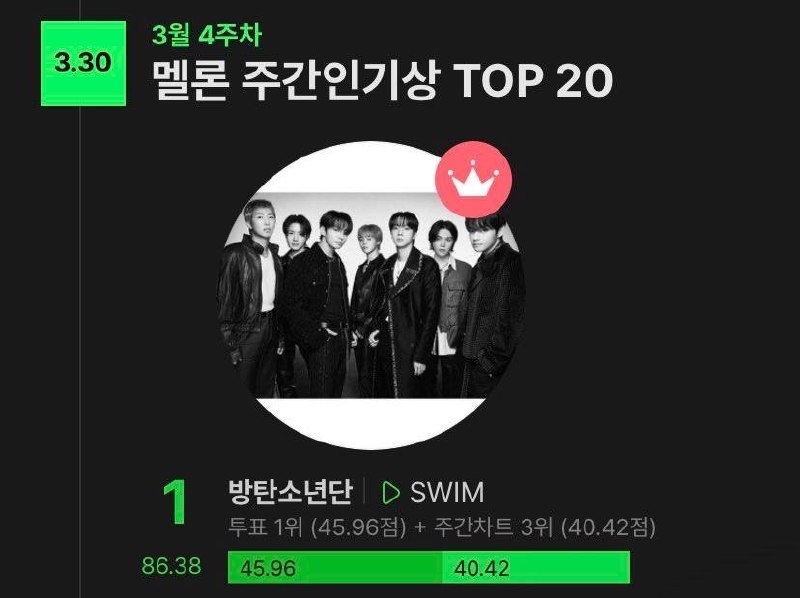 🌷 Песня "Swim" получила награду Melon Weekly Popularity Award