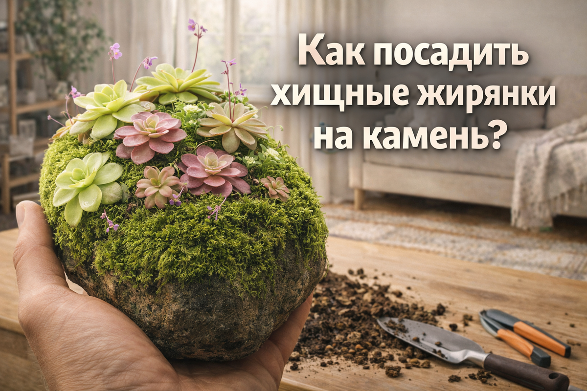Если вы хоть раз видели жирянки, аккуратно посаженные на камень, то наверняка ловили себя на мысли: оно вообще живое? Маленькие липкие розетки сидят во мху, словно всегда там росли, и вся композиция выглядит так, будто её собрали не на подоконнике, а украли прямо из тропического леса. Хорошая новость в том, что такую посадку реально сделать дома. Плохая — после первой удачной композиции очень трудно остановиться. Любой камень начинает казаться подходящим...