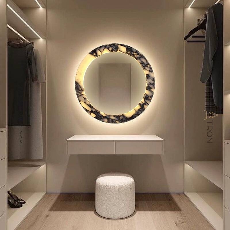 Зеркала серии ELIAS c рефлексной и внутренней подсветкой из мрамора с фактурой Bulgary Stone