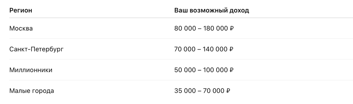 👉 При этом верхняя граница в каждом регионе достижима при работе в частной практике, развитии личного бренда и использовании онлайн-формата.
