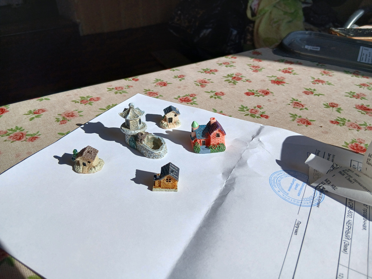 Под комнатные, для красоты. - Говорит мне, вот, купила домики а они на земле не держатся.