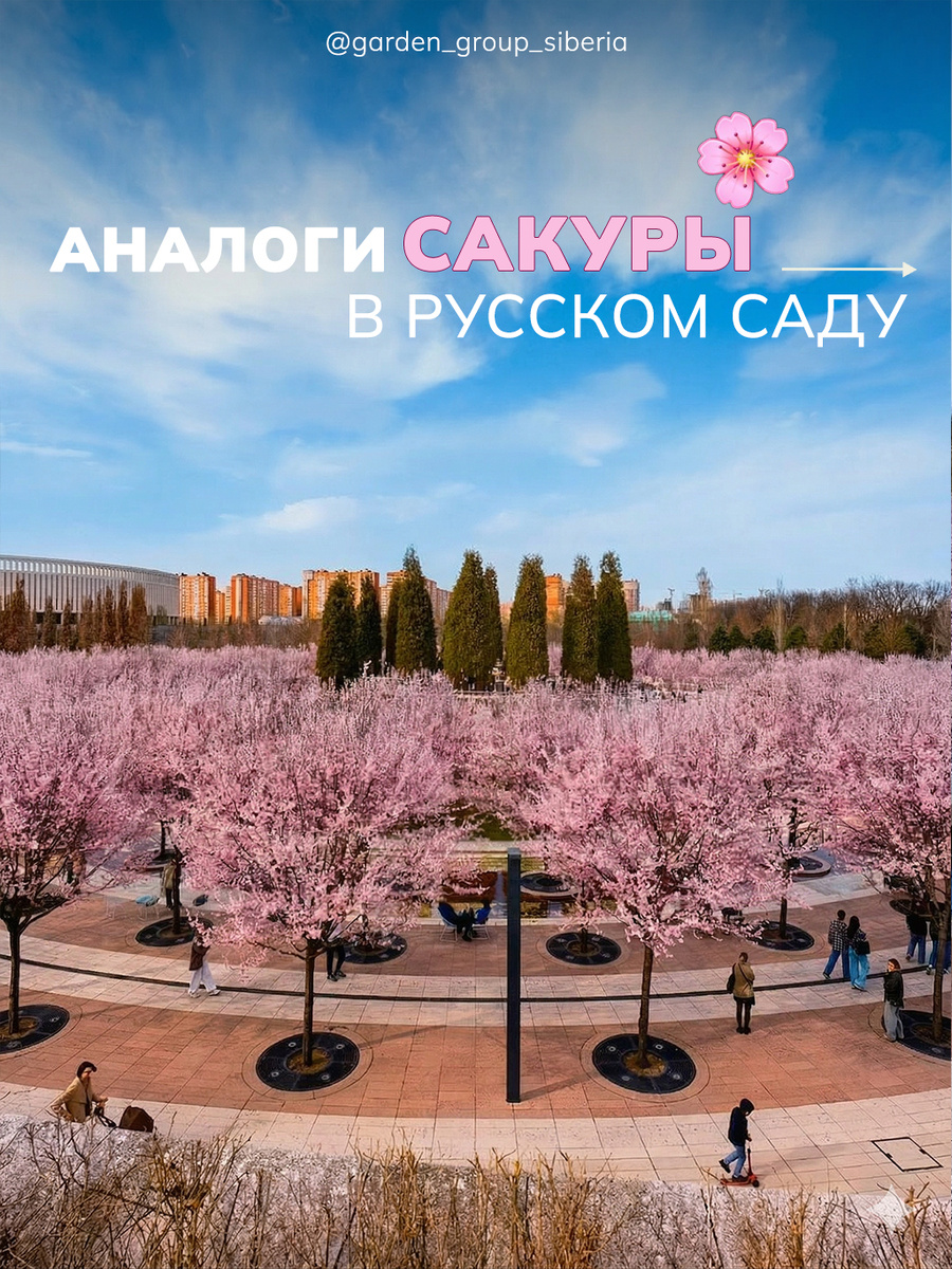 Весеннее цветение сакуры — образ, который кажется недосягаемым. Но на самом деле создать такое же воздушное, цветущее пространство можно и в российском климате. Причём — устойчиво, надёжно и без компромиссов по эстетике. Сакура — это вишня мелкопильчатая (Prunus serrulata). А значит, её достойные аналоги — среди близких видов: 🌸Вишня Саржента — дальневосточная красавица с пышным цветением и хорошей морозостойкостью 🌸Микровишня простёртая — компактный кустарник с обильным цветением 🌸Микровишня войлочная — не только декоративна весной, но и даёт вкусные плоды летом 🌸Микровишня железистая — формирует красивую крону и покрывается облаком бело-розовых цветов Отдельное направление — цветущий миндаль. Например, миндаль бобовник (степной) — настоящая находка: 🌸Цветёт очень рано, до появления листвы 🌸Создаёт впечатляющее розовое облако цветов 🌸Осенью радует декоративными плодами 🌸Отлично переносит морозы средней полосы Декоративные яблони: 🌸 создают плотное, насыщенное цветение — от бе