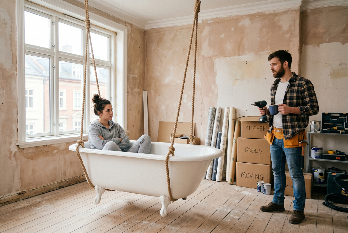Вы участвуете в эксперименте на прочность отношений. Мы собрали короткую инструкцию, как не поссориться раньше, чем высохнет штукатурка. В какой-то момент дом становится похож на филиал Мумбаи. Всё в пакетах, коробках и мешках. Вместо мебели лежат пять мешков цемента и десять коробок. Новый унитаз стоит в зале как арт-объект. Это нормально. Главное правило: оставьте одну зону без ремонта.