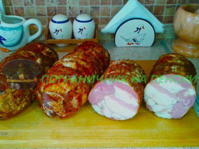 Шеф-повар Кузьма Васильевич полон сил и готов к очередным кулинарным свершениям. А готовим мы очередной мясной деликатес в сетке, на этот раз из пузанины. 1. Пузанина (без шкуры) – 3, 0 кг; 2. Соль поваренная – 30 гр. (10 гр. на 1 кг мяса); 3. Соль нитритная 0. 6% NaNO₂ – 30 гр. (10 гр. на 1 кг мяса); 4. Сахар песок – 30 гр. (10 гр. на 1 кг мяса); 5. Комплексная пищевая добавка «Онежская» - 2 гр.; 6. Биофос-90 (фосфат пищевой) – 9 гр. (3 гр. на 1 кг мяса); 7. Смесь специй – 12 гр.; (≈ 4 гр. на 1 кг мяса) (более подробно о специях читайте по тексту рецепта); 8. Паприка копчённая (молотая) – 1 ч. ложка; 9. Сетка формовочная Ø80 мм – ≈ 1 метр. 1. Чеснок сухой – 25 гр.; 2. Фенхель семена – 13 гр.; 3. Перец чёрный горошек – 10 гр.; 4. Кориандр зерно – 5 гр. 5. Перец душистый горошек – 2 гр.; 6. Лавровый лист – 1 гр.; Весь процесс приготовление проводится при температуре мяса +1 ÷ +2°C, до Шага 23 (отепление). Иначе при нагревании в духовке мясо отдаст весь сок и получится сухим. 1. Пузанин