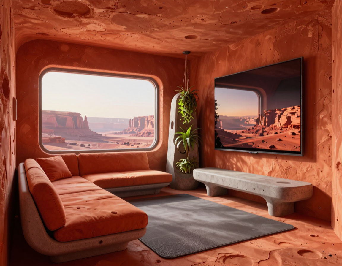 - Материалы — местные. Реголит (марсианский грунт) перерабатывается в прочные, теплые на ощупь композиты. Дерева нет, поэтому текстура камня и глины становится эстетическим стандартом.