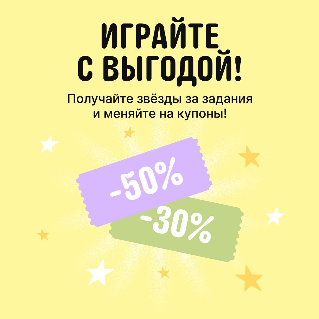 Стартовала новая волна «Звёздных купонов». Выполняйте задания, получайте серебряные и золотые звёзды и обменивайте на купоны продавцов. 🛒 Купоны можно использовать с 10:00 01 апреля 2026 до 09:59 8 апреля 2026 (МСК) Как участвовать: 1️⃣Перейдите на страницу мероприятия 2️⃣Выполняйте задания в разделе «Задания» и нажимайте «Собрать звёзды» 3️⃣Обменивайте накопленные звёзды на купоны в разделе «Купоны» Один купон — скидка у конкретного продавца. Максимум для одного участника — до 20 купонов. 🕓 Срок проведения мероприятия: с 11:00 30 марта 2026 до 09:59 8 апреля 2026 (МСК) ⤴️ К заданиям ⤴️ Сроки действия купонов и полные правила — по ссылке