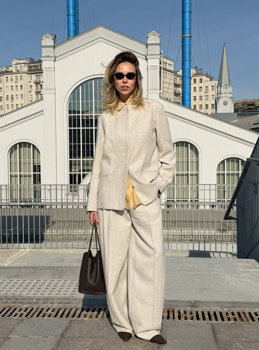 Мы сшили изделия из португальского льна — благодаря поливискозе ткань меньше мнется и лучше держит форму, чем обычный лен. У жакета полуподкладка из хлопка с вискозой — в нем не будет жарко даже летом, а длинный пояс на брюках подчеркивает линию бедер, но если понадобится, его легко снять. Все идеи для ваших образов на каждый день можно найти на сайте и в приложении 12 STOREEZ 🤍 12 STOREEZ