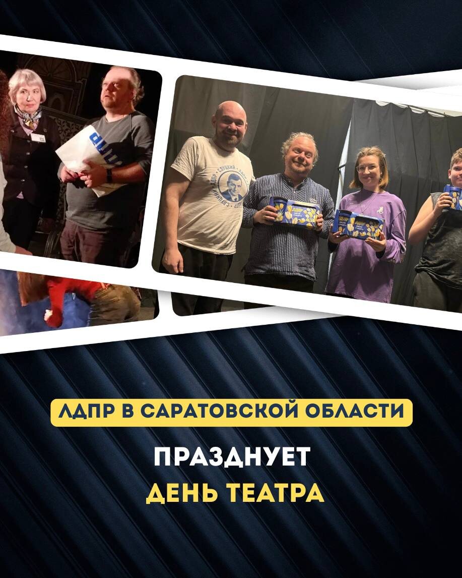Ежегодно 27 марта во всем мире отмечается Международный день театра. Праздник отмечают работники сценических произведений и миллионы людей, любящих спектакли и их создателей. Координатор Заводского местного отделения Марина Николаева в честь праздника приняла участие во Всероссийской акции «Ночь театрального искусства» в театре драмы для детей и молодежи «Версия», где для гостей провели творческие мастер-классы и познакомили с закулисьем. Координатор Гагаринского превичного отделения Владимир Орехов поздравил актеров театра «Ю….» с праздником и вручил партийные подарки. 💬 Мы ВКонтакте 🖥 Сайт ЛДПР | Саратов