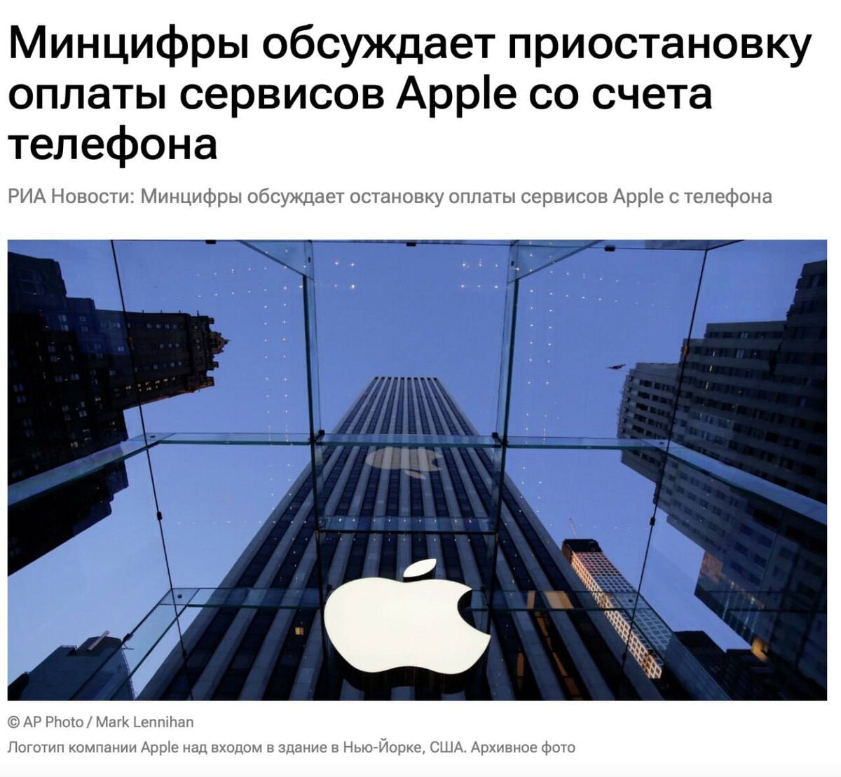 Минцифры обсуждает приостановку оплаты сервисов Apple со счёта мобильного телефона