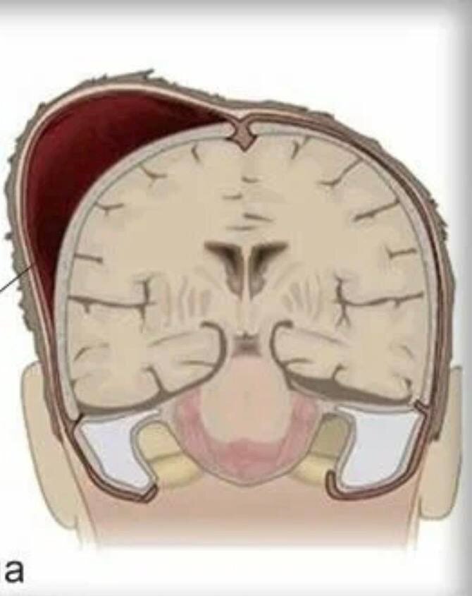 Кефалогематома представляет собой, скопление крови между костью черепа и надкостницой, имеет отграниченную овальную форму и не растекается по голове, располагается чаще всего в теменной области. Сообщения с головным мозгом не имеет, никакого давленияа не оказывает и достаточно благоприятна для дальнейшей жизни. Что делать и как быть ? По большей части это косметический дефект, связан с тем, что со временем кровь сгущается и твердеет, остается плотное образование.