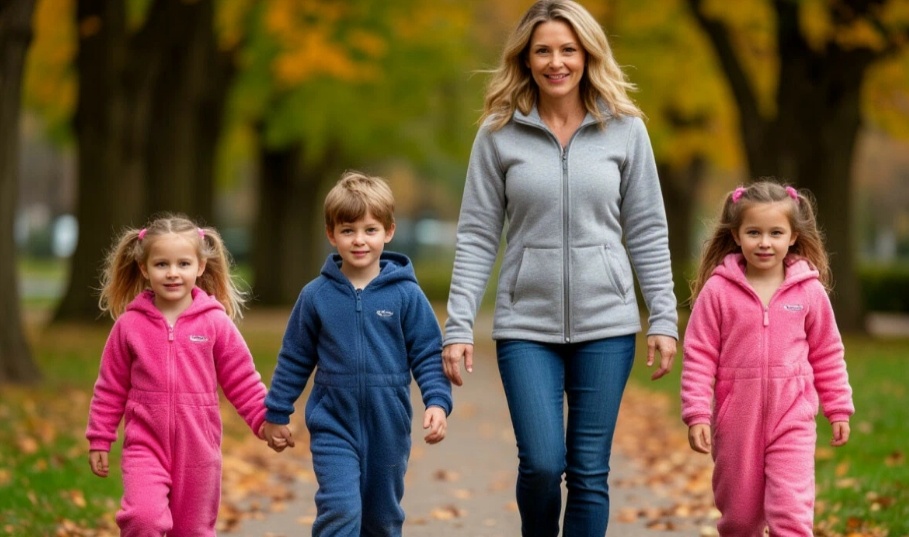 Малыши бодро шагали по аллее, тянувшейся вдоль школьного забора. Матвей шёл уверенно, а по обе стороны от него семенили девочки в одинаковых ярких флисовых комбинезонах и розовых шапочках.