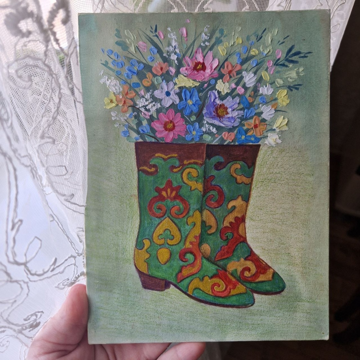 Как вы думаете, какие ещё?) Очень нравится комбинировать материалы и техники. Раньше рисовала только чем-то одним (только масло или только акварель) А сейчас желание эксперементировать и искать необычные методы рисования 😏