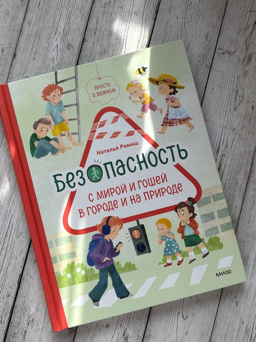 Безопасность с Мирой и Гошей в городе и на природе издательство МИФ не знаю как я выжила в своем детстве, наверное у меня был сильный ангел-хранитель или просто строгие родители. но сейчас став родителем, я понимаю что опасность может ждать на каждом шагу. радует, что Руслан меня слышит и слушает, не всегда конечно, но все же. например, сегодня, шли в сад, перед садом дорога, где всегда утром много машин, он остановился, а девочка из его группы решила обогнать и выехала на проезжую часть, мама за ней кое-как успевала. а по дороге как раз ехала машина, хорошо, что медленно и успела затормозить. чуть-чуть не попала под колеса.. в общем, вы поняли мой посыл, я очень рада, что в этом мире есть книги о безопасности и родители их читают своим детям 🩷 Новые истории Натальи Ремиш про Миру, Гошу и Бейби посвящены безопасности. На улице и на даче, в торговом центре и у воды они сталкиваются с самыми неожиданными ситуациями, а заботливые взрослые помогают с ними разобраться. Вопросы после