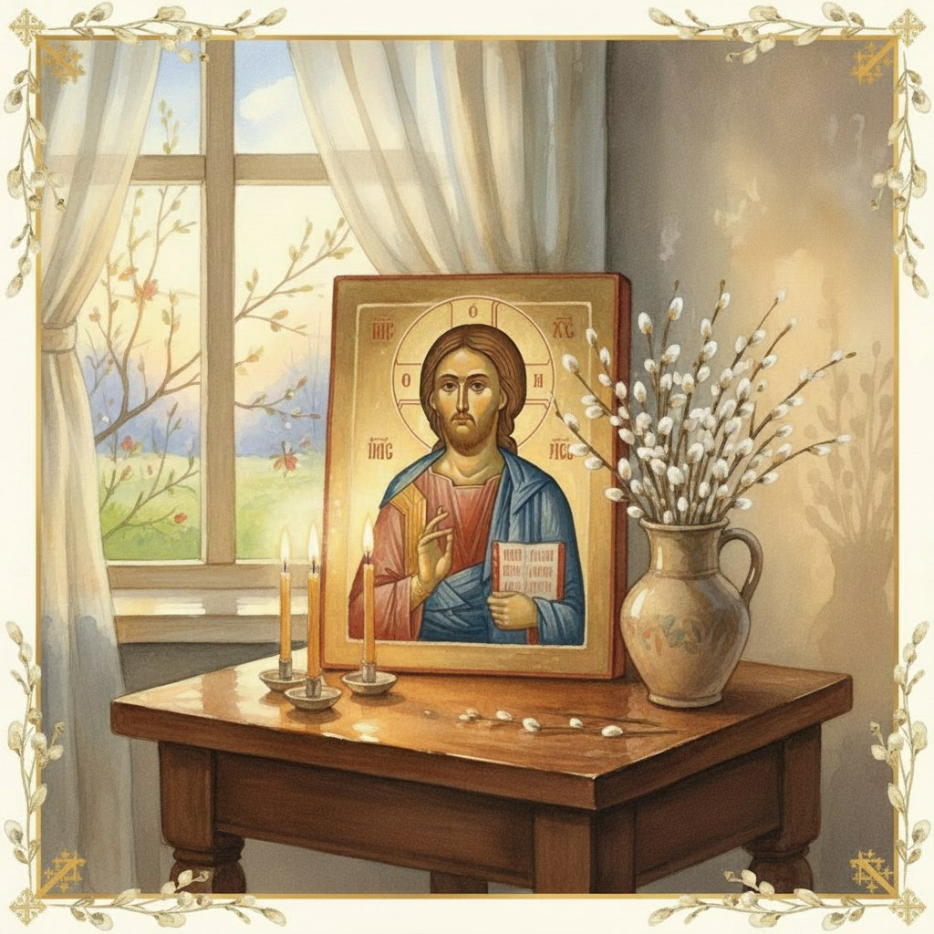 Важное значение имели и домашние обычаи: в избах ставили веточки вербы, украшали ими иконы, зелень использовали в обрядах — например, клали вербу в колыбель младенцу «на здоровье». Так церковный смысл цветоносных ветвей соединялся с крестьянским опытом пробуждения природы и верой в живительную силу весенней зелени.