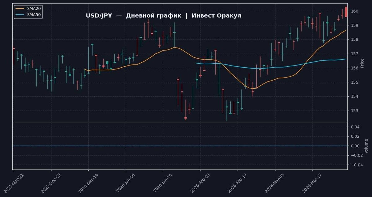 📍 ТЕКУЩЕЕ СОСТОЯНИЕ Цена: 159.59, изменение за день: -0.071%. Рынок реагирует на конфликт в Иране, поддерживая доллар; цены на нефть растут к максимумам за четыре года. 📊 КЛЮЧЕВЫЕ ИНДИКАТОРЫ Тренд: восходящий (1D BUY, выше SMA20 и SMA50). RSI(14) = 60.15 (нейтральный), MACD (медвежий). Поддержка: 156.91054, сопротивление: 160.35016. 🎯 ТОРГОВЫЕ СИГНАЛЫ (ближайшая неделя) 🟢 Умеренная (долгосрочный инвестор): Покупка, Вход: 159.589996, SL: 159.049426, TP: 161.211706 🟡 Сбалансированная (среднесрочный трейдер): Покупка, Вход: 159.589996, SL: 159.049426, TP1: 161.211706, TP2: 162.833415 🔴 Агрессивная (активный трейдер): Покупка, Вход: 159.589996, SL: 159.049426, TP1: 161.211706, TP2: 162.833415, TP3: 164.995695 ⚠️ ГЛАВНЫЙ РИСК Ключевой риск — интервенции японских властей при приближении к 160.00, что может вызвать резкий откат; обратить внимание на заявления министра финансов и уровень 160.00 как критическую отметку.