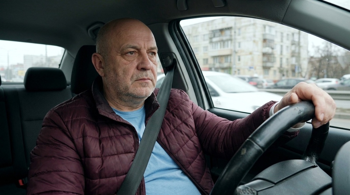 Марка автомобиля не читалась: руль перекрывал всё, что могло бы её выдать. Снято явно на телефон, под странным углом – так снимают люди, которые не привыкли позировать, но очень хотят произвести впечатление именно через объект, а не через себя.