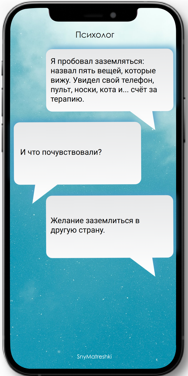 Классическая техника «назови пять вещей, которые видишь» работает отлично, но только если среди этих вещей не затесался счёт за терапию. Нормально — захотеть после этого заземлиться в другую страну. Это не побег, это здоровая реакция на финансовую реальность. Главное — не забудьте паспорт. Поддержать автора Александра Бóгдан,