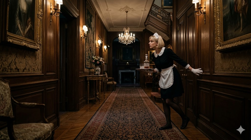 Ночное дежурство в «Черных Озерах» было испытанием для нервов. Анне выпала смена в западном крыле, прямо возле личных покоев хозяина. Ночь была мертвой, только старинные напольные часы в холле методично отсчитывали секунды, похожие на капли воды, падающие в бездну.