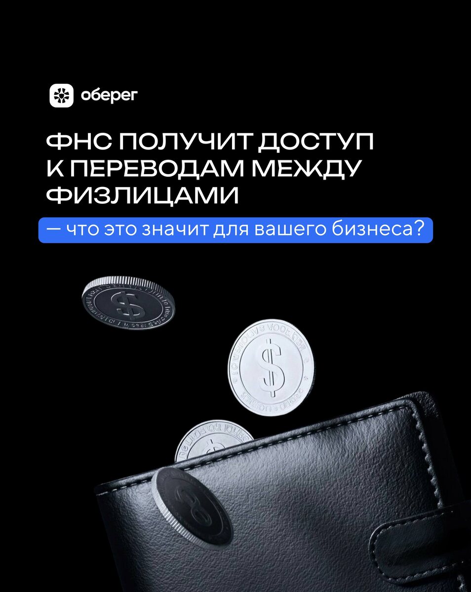 Теперь даже «личные» переводы могут попасть под внимание налоговой, если по ним видны признаки бизнеса. Банки начнут передавать данные, а ФНС — запрашивать информацию без проверок. Это особенно важно для тех, кто принимает оплату на карту физлица или работает без регистрации. 👍 «Оберег» поможет легализовать доходы, оформить бизнес и снизить риски - до появления вопросов со стороны налоговой. Контакты «ОБЕРЕГ»: Телеграм | WhatsApp | Сайт | ТГ канал Этот канал в МАКСе