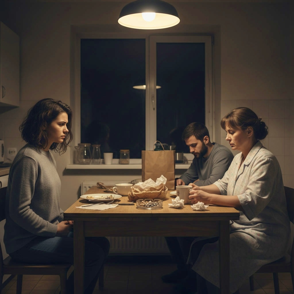 В подъезде было тихо. Лифт поднимался медленно, с привычным скрипом. Я достала ключи, вставила в замок, повернула. Дверь открылась бесшумно. В прихожей горел свет. Из кухни доносились голоса. Мать и Виктор сидели за столом, друг напротив друга. Увидев меня, мать встала. Виктор даже не поднял головы.