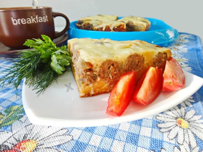 Теперь-самая главная фишка этого пирога! Из фарша мы лепим фрикадельки и плотненько выкладываем их на поверхность теста, слегка утапливая.