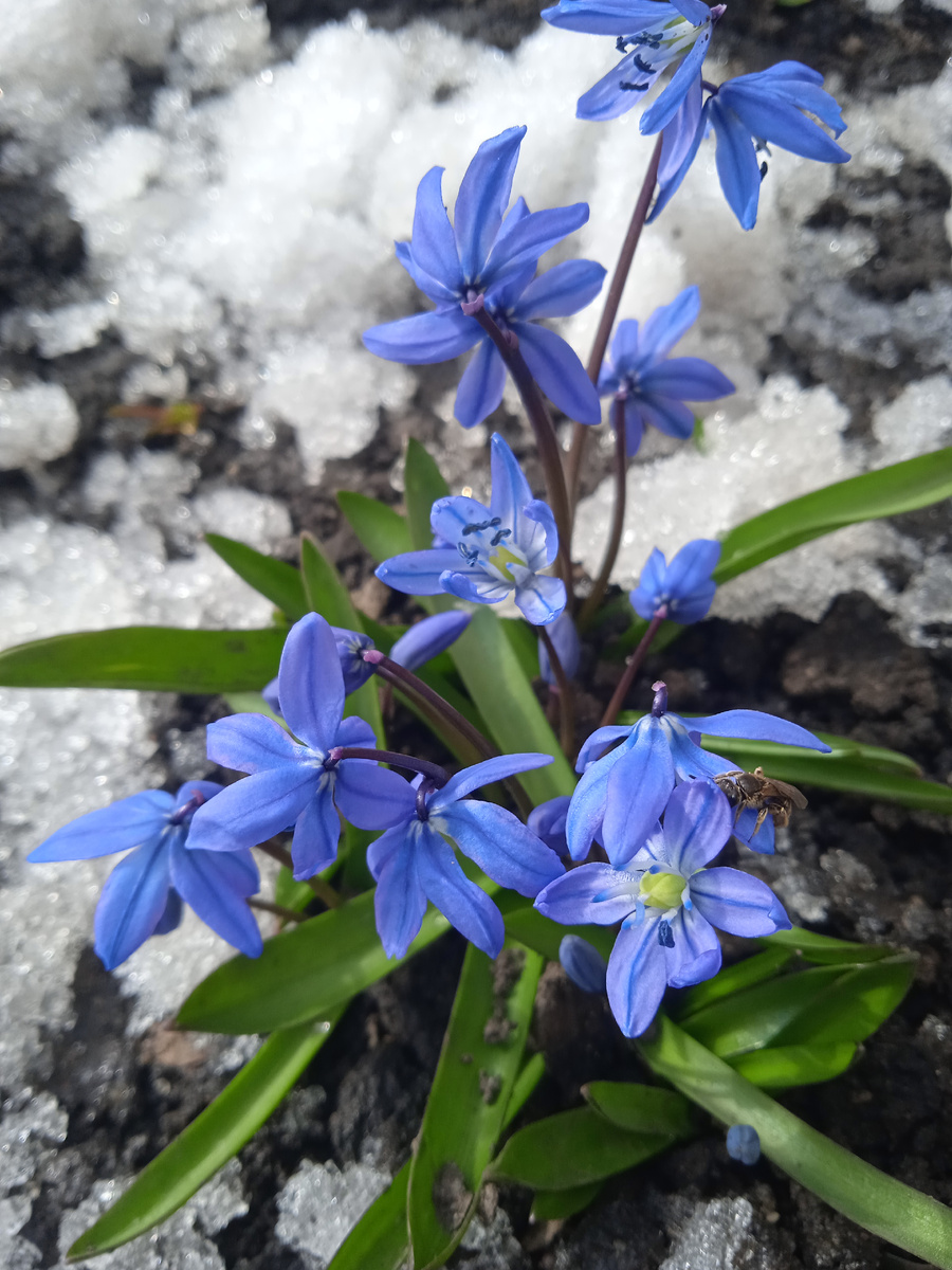 Вот наконец-то и в нашем регионе зацвели первые цветы.В выходные на даче порадовали первым весенним цветением - пролески. Цветение для меня было полной неожиданностью .У нас ещё снега в саду очень много.Прикхалм в субботу на дачу,а они уже цветут,а я телефон дома забыла.И сфотографировать красоту было нечем .В воскресенье вооружившись телефоном приехала запечатлеть первые весенним цветы на